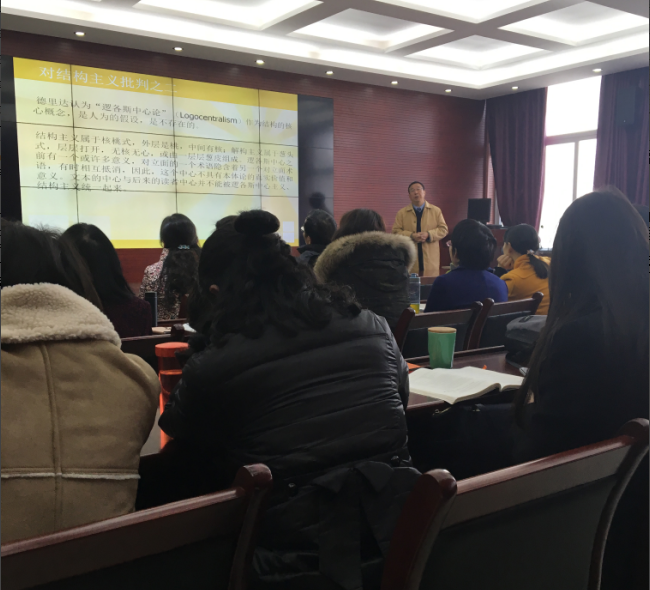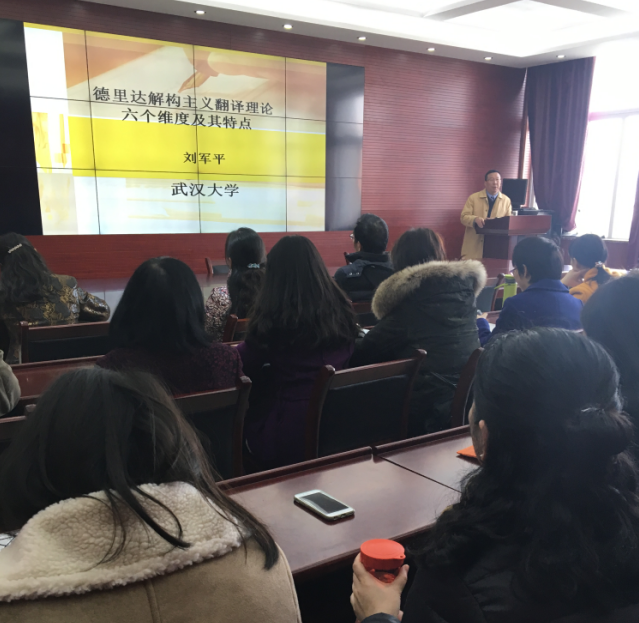 本次讲座的主题为“德里达解构主义翻译理论的六个维度及其特点”。在讲座中,刘教授系统地介绍了德里达解构主义的翻译思想,对其核心概念如延异、踪迹、可重复性、确切翻译作了细致的分析和阐述,说明了德里达的翻译理论不仅是形而上的构建,也可运用到翻译实践的思考。刘教授的讲座条理清晰,举例旁征博引,贯古通今,生动活泼。到场聆听讲座的91久久精品无码一级毛片全体专任教师对德里达德翻译理论有了更深入的了解,并深受启发。讲座结束后,刘军平教授悉心解答我院教师的疑问,并与我院教师展开了热烈的讨论。