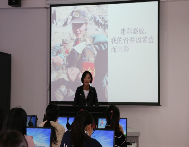 入伍时还不满19岁的她,主动申请从通讯班调到特警队,后来还担任了班长。两年义务兵役完成后在部队的挽留下继续服役至今,参加保卫任务、训练新兵,表现优秀。2016年赵君光荣地加入了中国共产党。四年的时光让一个象牙塔里的学子成长为一名武警战士,她在军旅生活里练就的坚韧品质让在座的同学们由衷的钦佩。