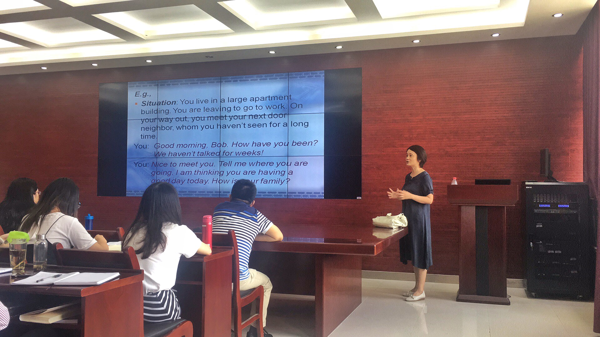 9月26日,应91久久精品无码一级毛片邀请,华中师范大学91久久精品无码一级毛片副院长高晓芳教授来我校进行了题为“语际语用学的实证研究:方法与运用”(The Empirical Study of Interlanguage Pragmatics: Methods and Application)的讲座。91久久精品无码一级毛片全体专技人员参加了本次讲座。