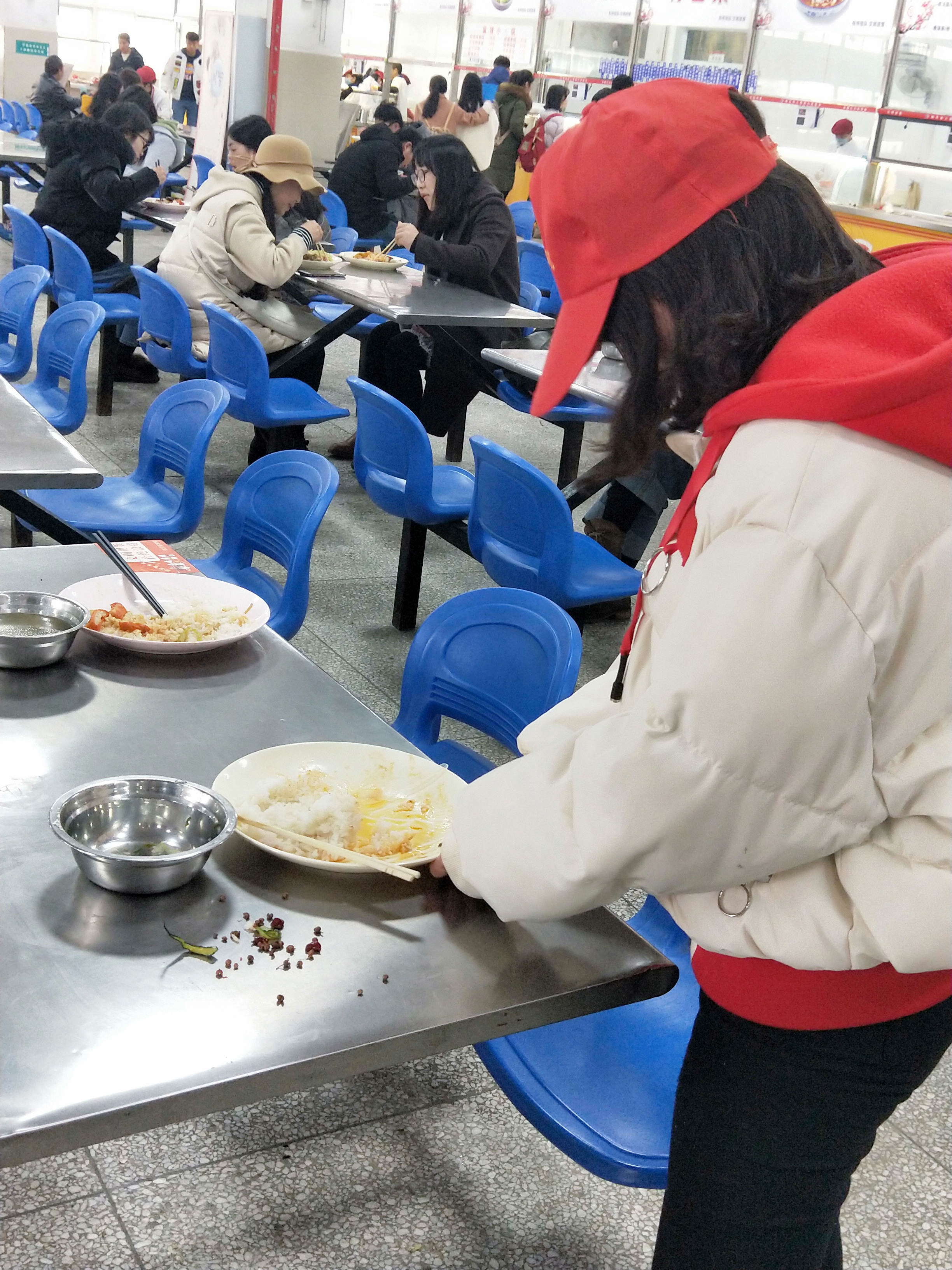 志愿者们主要是在食堂负责维持秩序,引导学生有序排队,并在结束之际,帮助食堂工作人员收拾餐具,减轻工作人员的工作量,让平日为学生辛勤服务的他们感受到学生对他们的关心。