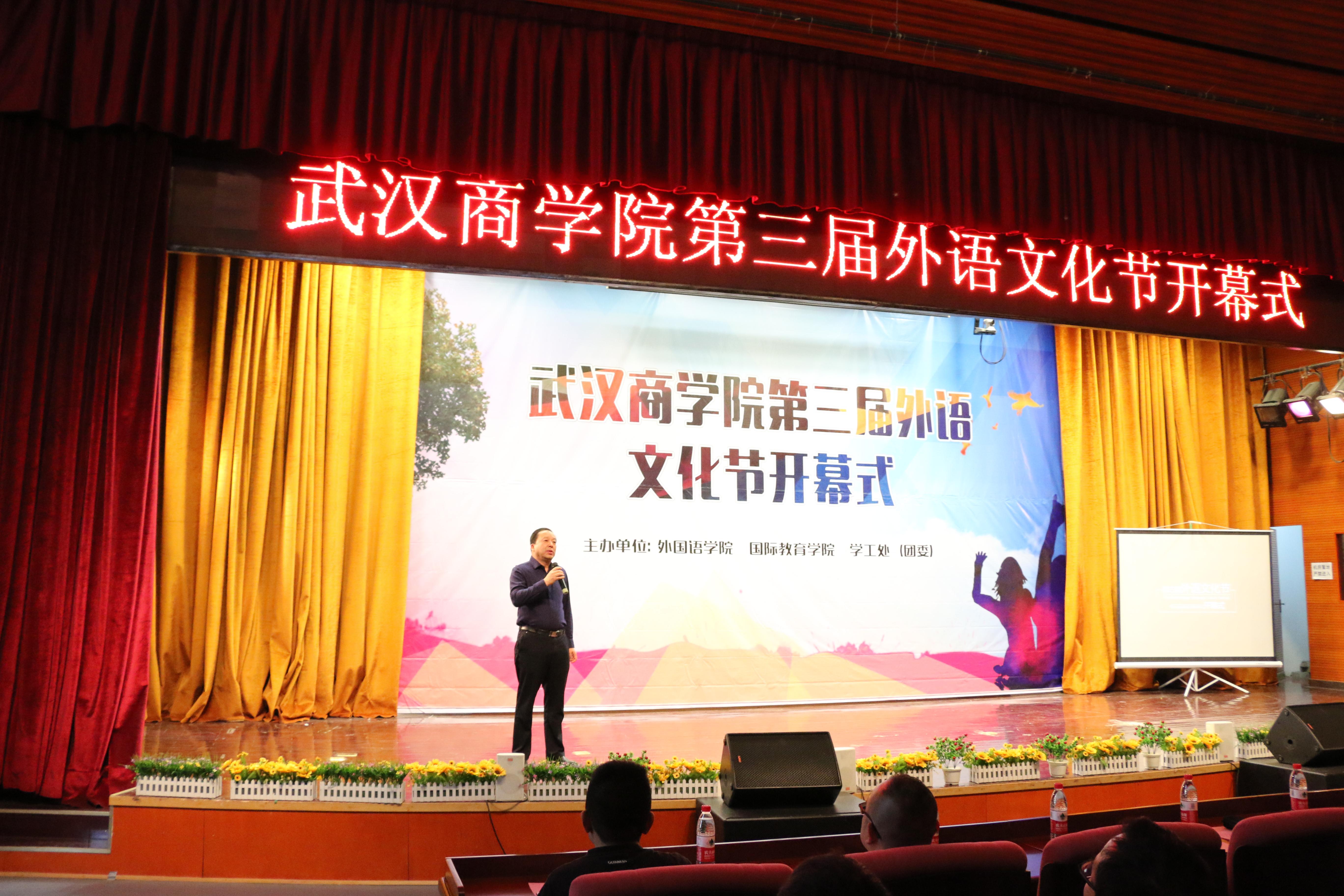 为丰富校园文化生活,激发全校学生学习外语的兴趣,营造学习外语的浓厚氛围,给学生搭建“想说、敢说、能说、乐说”外语的平台。4月17 日下午2点整,武汉商学院第三届外语文化节在图书馆报告厅拉开帷幕,张石副校长宣布第三届外语文化节开幕式正式开始。相关学院及部门负责人、部分教师和学生参加了开幕式。