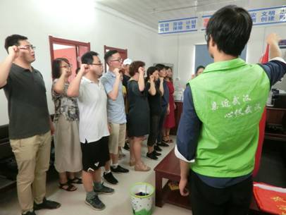 而后,支部主题党日活动在村会议室进行。在学生志愿者的观摩中,全体教工党员们重温了入党誓词,为新加入支部的董亚钊老师过了政治生日,聆听了赴军运会执委会服务的刘梦婷老师所做的“建功新时代,岗位作贡献”的党课,她在党课中与党员们分享了自己服务军运会的初心,军运会对于湖北和武汉发展的重要意义,以及她在军运会执委会中所看到的那些“党员劳模”的故事。