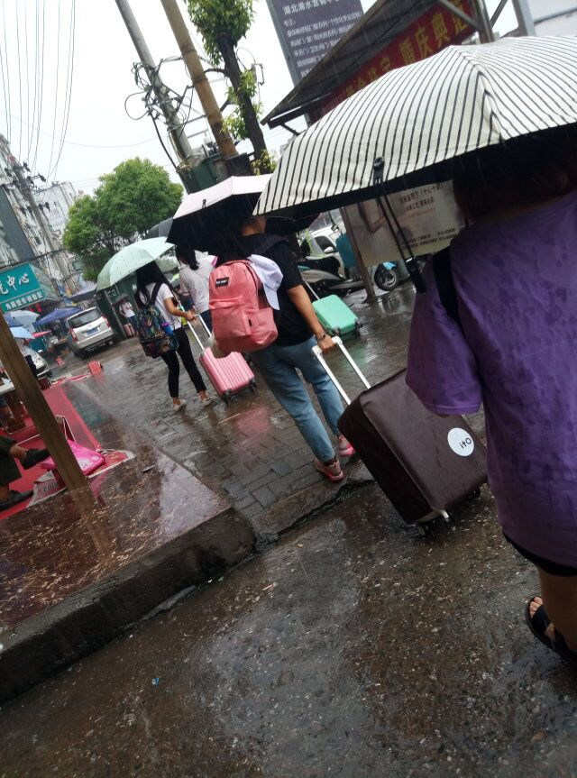图1 实践队冒着大雨到浠水县转车去关口小学