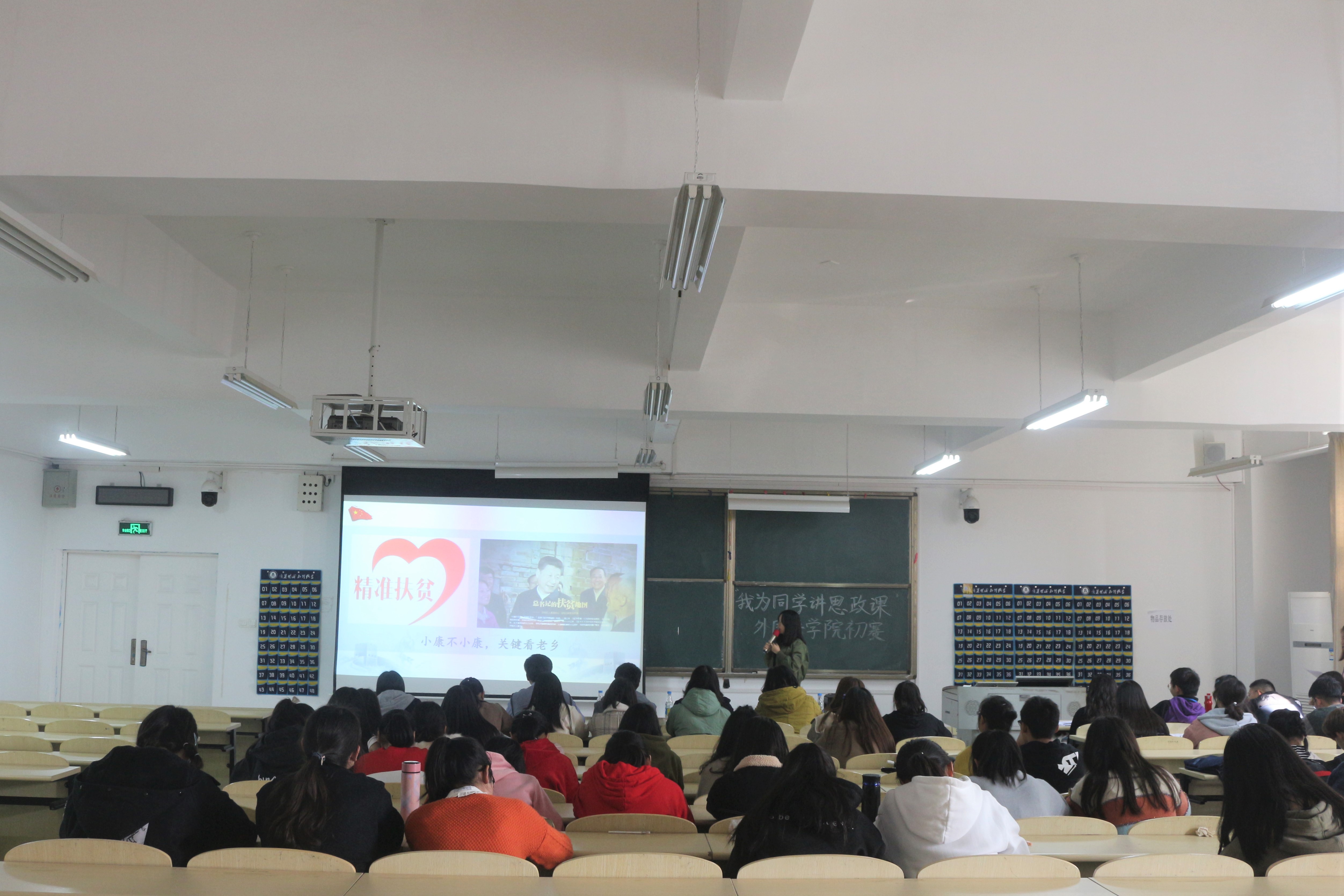 参与初赛展示的每位同学都充分准备了自己的讲课内容,包括改革开放、新时代、生态、中国梦等主题,自信笃定,皆展现了自己的最佳状态。比赛过程中,在场的老师和同学都被选手的精彩展示而吸引,选手在讲课时通过视频播放、与观众互动等形式使现场的氛围更加轻松。