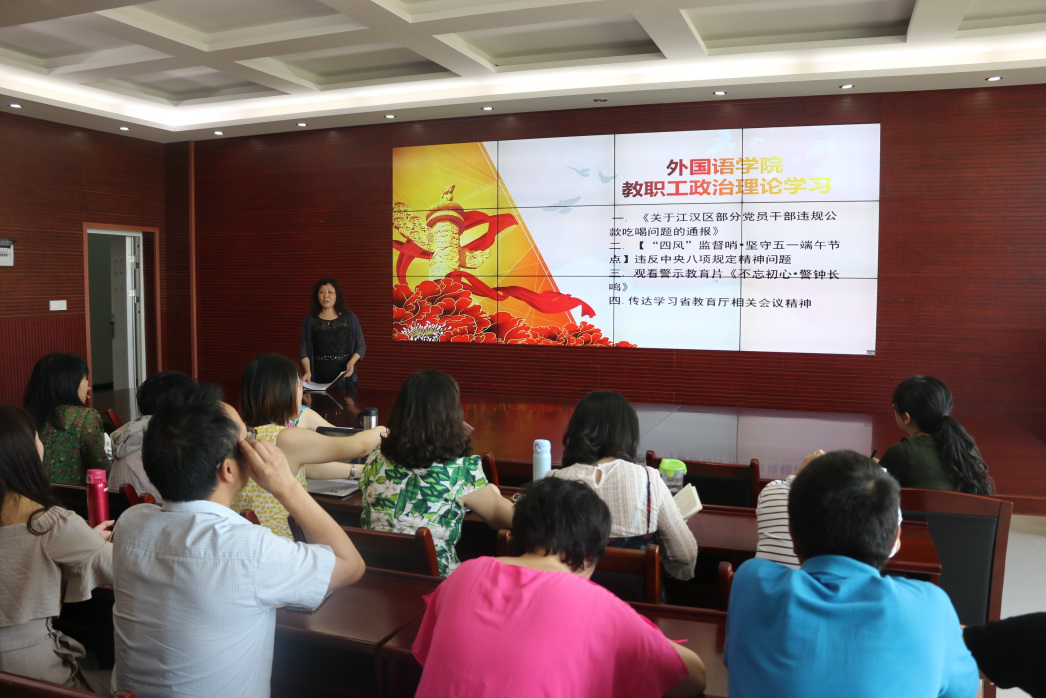 根据校纪委要求,6月12日下午,91久久精品无码一级毛片及时召开全体教职工大会,集中学习《关于江汉区部分党员干部违规公款吃喝问题的通报》,并要求教职工结合《中国共产党纪律处分条例》、《中国共产党党内监督条例》以及《廉政准则》等党纪条例进行认真对照,统一思想,强化纪律意识,自觉杜绝不正之风,提高政治工作的自觉性和积极性。