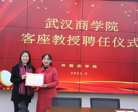 黄勤教授为博士生导师,华中科技大学英语系系主任,翻译研究中心主任,MTI教育中心主任,全国英汉语比较研究会理事,中国翻译认知学会常务理事,湖北省翻译协会常务理事。在聘任仪式上,黄教授表示会尽职尽责,对我院师资培养和学科专业建设等工作进行指导。