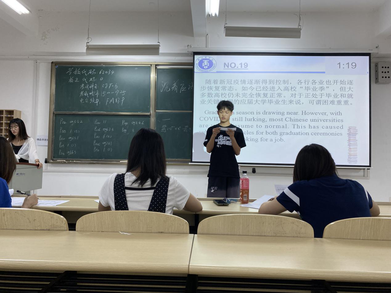 6月15日下午,武汉商学院口译队在北四318成功举办了第二期队员选拔活动。这是自2020年口译队成立以来,第二次招募并选拔新成员,旨在为口译队注入新的活力。本次选拔汇聚了来自各个学院近30名优秀学子。选拔现场气氛紧张而刺激,每位选手都尽力呈现出最好的状态,其中不乏表现惊艳的选手,引起现场观众的阵阵掌声。比赛结束后,口译队第一期的队员杨康同学作为代表,向在场的选手和同学们介绍了他在口译队中的学习经历。杨康同学表示参加口译队是他做出的一个非常正确的决定,口译队组织的各项培训、讲座沙龙、队内选拔等活动让他在学习态度上有了重要调整,意识到了争分夺秒学英语,练好语言基本功的重要性。