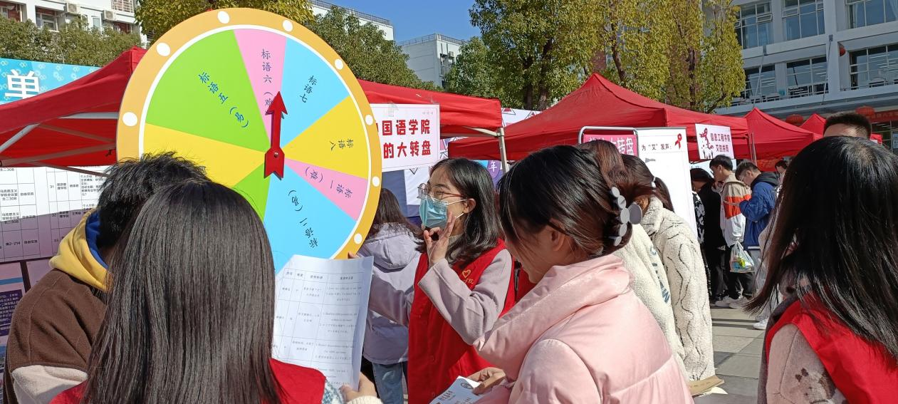 在本协会会长、各部门部长的安排下由十七名志愿者组成两组交替负责此次防艾嘉年华活动。现场活动内容为“艾”的大转盘,参加活动的同学需转动标有八个标语的大转盘,由志愿者说出相应标语的汉语,同学自行选择英语或日语进行翻译,正确翻译出三个标语即可获得小礼品与91久久精品无码一级毛片活动印章。活动现场志愿者们耐心地为同学们讲解标语,出色地完成了宣传引导工作。