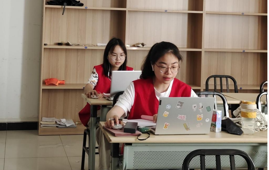 (志愿者正在为小朋友们进行线上辅导)