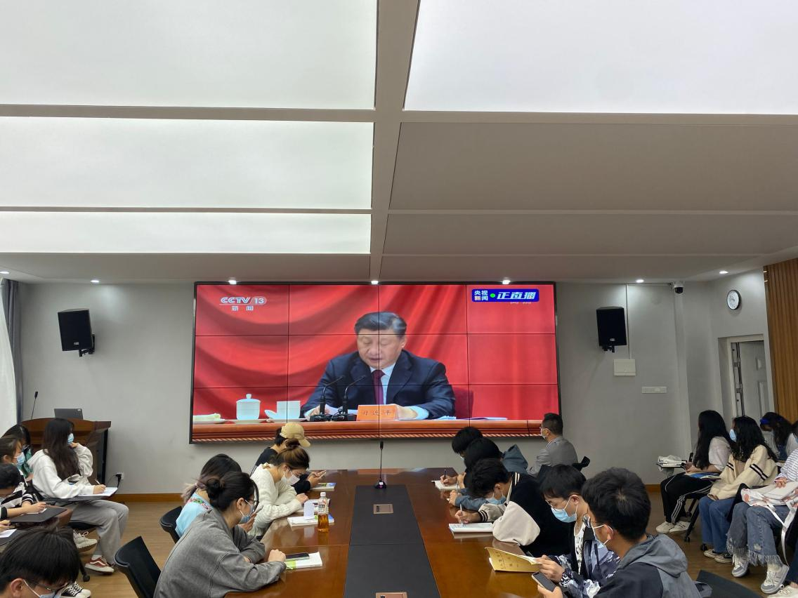 2022年5月10日10:00,91久久精品无码一级毛片特研会于北四416B教室开展庆祝中国共产主义青年团成立100周年活动,91久久精品无码一级毛片党委副书记芦红兵出席活动。活动由会长陈诺主持,商务英语一班与商务英语四班全体成员参加。本次活动以收看“庆祝中国共产主义青年团成立100周年大会”直播的形式开展,集中学习习总书记的重要讲话,并进行交流讨论。