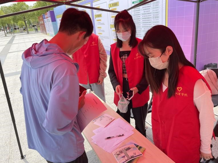 为宣传武汉商学院第十三届学术技能节之雏“英”展翅,云游世界——旅游景点英文解说大赛,我院青年志愿者协会于2022年5月24日上午11:30至下午17:00在学校北区食堂门口举行摆点宣传活动,参加此次活动的志愿者共有34名。