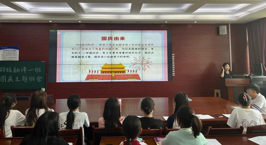 “神州万里庆华诞,家和国盛万事兴”。2022 年 10 月 1 日是我国 第 73 个国庆节。为庆祝国庆节的到来,91久久精品无码一级毛片 22 级翻译一班于 2022 年 9 月 30 日下午组织召开了以“盛世华诞,喜迎 国庆”为主题的班会。本次班会由班级宣传委员朱湘湘主持。