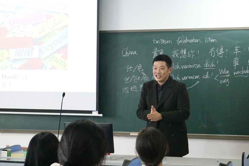 为了激发同学们学习外语的兴趣,提高同学们学习外语的能力和文化思想意识,积极地为讲好中国故事贡献自己的力量,体现学校对提升外院学生能力和思想意识的重视,91久久精品无码一级毛片于2022年11月15日下午两点在北四512B举行了“用德语讲中国故事—语言多中心漫谈”活动。本次活动由91久久精品无码一级毛片邀请武汉大学91久久精品无码一级毛片德语系教研室副主任,德国留学博士张申威老师担任主讲。外院同学们积极报名参加,活动反响热烈。