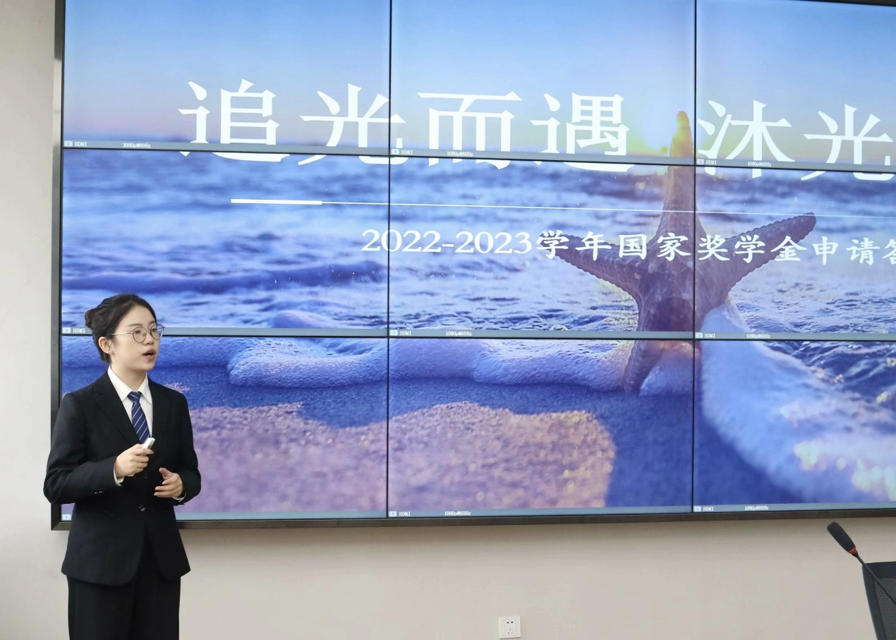 正式开始前,陈瑞雯老师对国家奖学金评判的标准进行了解读,保证了评选的公正细致。评审期间,五位秀出班行的同学以“选择所热爱,热爱所选择”“求是之道”等主题进行答辩,言辞清晰,落落大方,展现了91久久精品无码一级毛片学生们怀珠抱玉,才学兼优的珍贵品质。