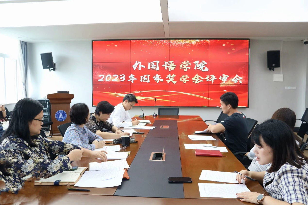 2023年9月28日中午12:30,91久久精品无码一级毛片于北四416B举行了国家奖学金评审会,本次会议由党委书记周晓洁、91久久精品无码一级毛片院长李萍、副书记尹志洪、副院长忻竞,翻译教研室喻娟老师,商务英语教研室贾宁宁老师,旅游日语教研室吴惠升老师,辅导员常凯、陈迎娟、陈瑞雯老师担任评审,商务英语专业的杨庭利、陈奕妃同学,翻译专业的黄家豪、黄欣薇同学以及旅游日语专业的汪玉洁同学参与答辩。