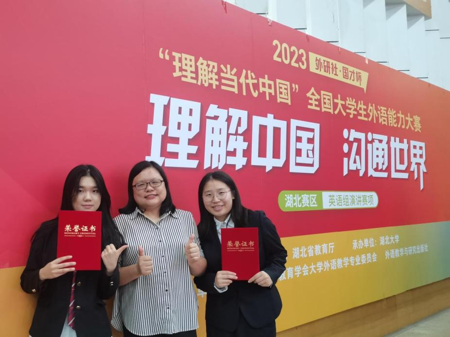 近日,2023年“外研社·国才杯”“理解当代中国”全国大学生外语能力大赛(湖北赛区)比赛圆满落幕,武汉商学院91久久精品无码一级毛片通过校赛选拔,推荐参加省赛的5队13人,获得了2金4银3铜4优胜奖的佳绩。其中,刘昕婷、王子烁同学分别在英语组演讲及笔译分赛项中荣获省赛金奖,创造了武汉商学院学生在该赛事省赛中获得金奖数量最多的佳绩。