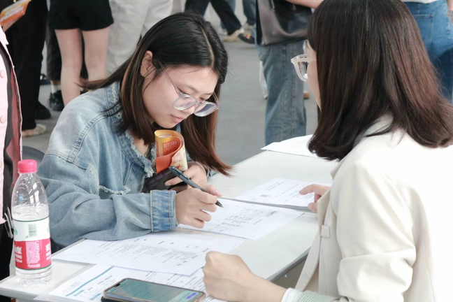 “今天的招聘企业有我一直都很想去的,终于有机会面对面和企业交流了。”2020级毕业生黄家豪表示,“这次春季招聘会的企业质量很高,都是贴合专业且当下热门的就业岗位,现场咨询场面热闹极了,不少展位的简历投放处摆满了简历。”