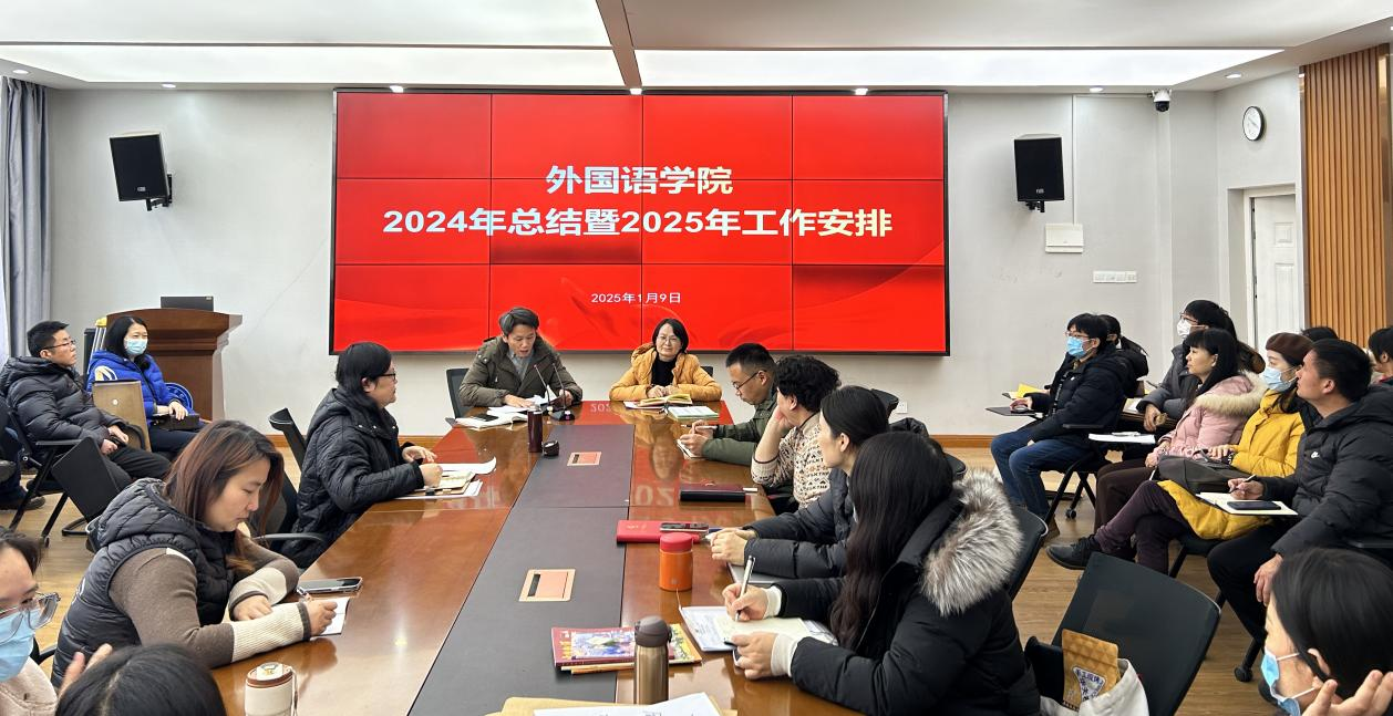 展望2025年,李萍院长点出了学院发展中存在的问题,部署2025年重点工作。李萍院长希望各位教师利用寒假积极走访企业,持续深入开展“访企拓岗促就业”活动,主动融入地方,利用专业特长服务区域经济社会发展。李萍院长指出,在人工智能的冲击下,外语类专业如何转型发展,如何与其他专业复合,办出特色,是亟待思考的问题,希望大家要有危机意识,群策群力,积极求变。在这个过程中老师和学生、科研环境和育人环境、奋斗的精神和凝聚力都缺一不可。她激励全院师生团结一心,共同推动学院向前发展,在科研上勇攀高峰,在育人上走出具有特色的外语专业发展之路。